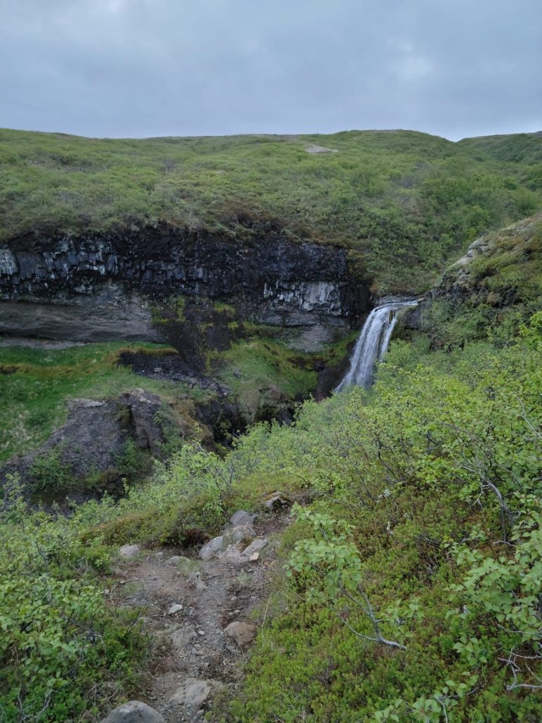 After a couple of hours of soaking, we drove to Thingvellir National Park, a historic site where the Icelandic Parliament met, starting in 930 AD. There’s a nice hike through the park, where you can also see lots of the tectonic plate activity that Iceland is famous for. Admission is free and we spent a couple of hours tramping around. We then headed to the campground by the Faxi waterfall which was very pretty, uncrowded, and had an electric hookup for our camper, plus clean bathrooms and a place to wash dishes. It had been drizzly all day but only started pouring after we were at the campsite!