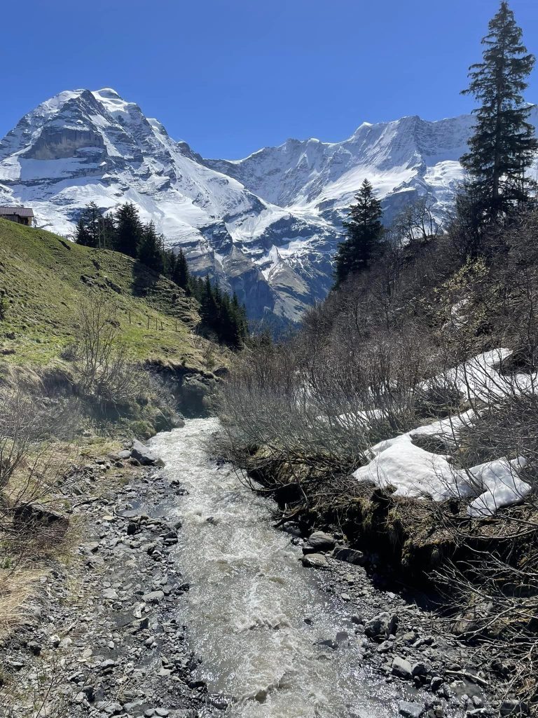 I’ve never been to Switzerland in May before. Crazily enough, my main concern was the weather: I packed full rain gear and tons of warm clothes, and in reality the weather was perfect. When we were in the Berner Oberland, it was (no kidding) so sunny that it was almost hard to take good pictures of the mountains because of the glare off the snow. There was definitely still some snow coverage higher up in the mountains, but things were melted out enough that we could still do all-day hikes in both of the locations we visited.